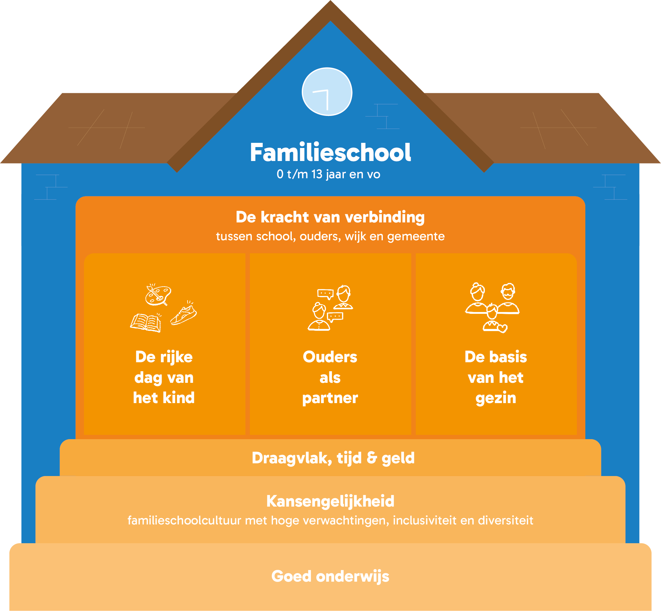 Ieder kind heeft recht op een mooie en succesvolle schoolloopbaan. Om zich optimaal te kunnen ontwikkelen, is een uitdagende leeromgeving nodig – en dat is meer dan onderwijs alleen. De kansen op school worden mede bepaald door de thuissituatie en de buurt waar het kind opgroeit. Daarom biedt de Familieschool volop mogelijkheden en ondersteuning om ervoor te zorgen dat ieder kind het beste uit zichzelf kan halen.