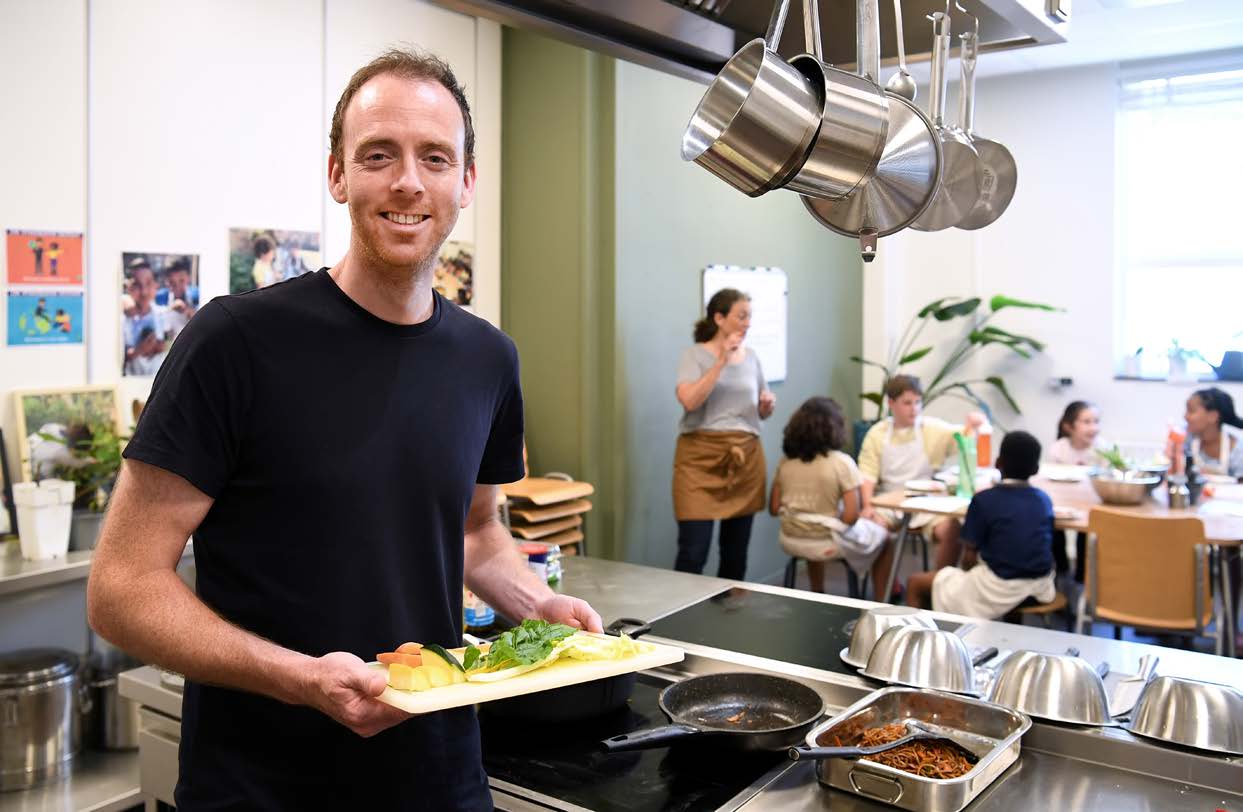 Sean: ‘Het oorspronkelijke idee dateert al van twintig jaar geleden, toen de toenmalige adjunct-directeur merkte dat ouders elkaar vaak niet eens aankeken als ze hun kinderen naar school brachten. Daarop besloot hij ouderavonden te organiseren, waarbij ouders iets meenamen uit hun eetcultuur. Aanvankelijk waren er maar een handvol ouders aanwezig, inmiddels komen er vijftig tot zestig ouders naar de thema-avonden om samen te eten en met elkaar in gesprek te gaan.’